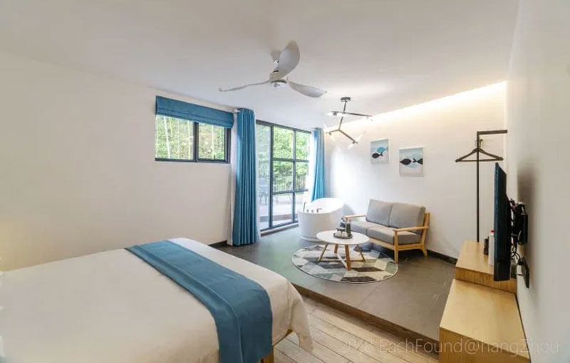 2018年开业,2018年装修,6间房。安吉蓝莲花开·山楂树民宿:安吉乡村公路非常的漂亮,天然与人文景观的相融,让感观与眼观完全放松与愉悦。沿途,一片枫树,一片竹林,一泉小溪,一片稻田,一条美好的小路延绵到村子的尽头,遇到了一段主人修的小长城,便停下车来,就在一条小溪之边,瞬间整个人都精神了。