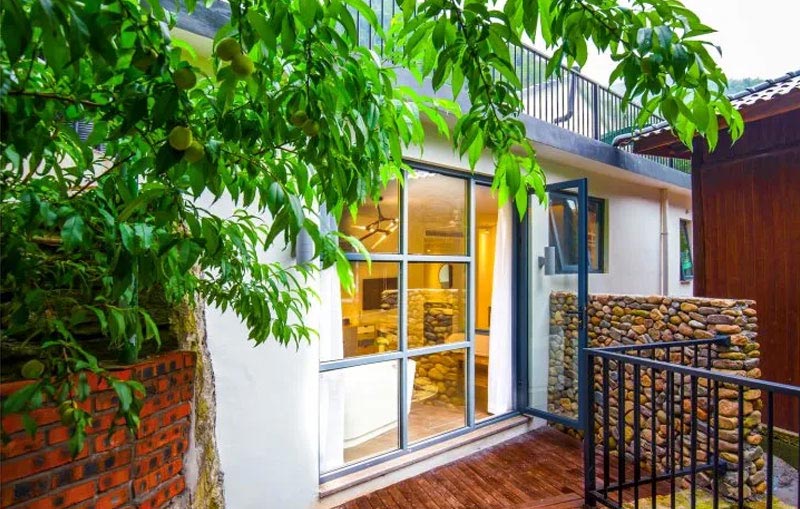 管家把行李拎到客厅。到来之人不肯入内,只因在门口平台之上,整个郁郁葱葱山脉近在眼底,酸爽得想大叫,歇斯底里的那种。轻风,绿意,霞光,初月,印染在一起,美得不能言语。这里有一棵200多年的山楂树,恋不恋爱随便你!
