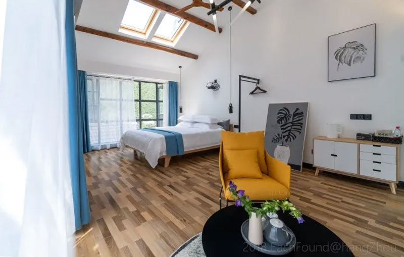 2018年开业,2018年装修,6间房。安吉蓝莲花开·山楂树民宿:安吉乡村公路非常的漂亮,天然与人文景观的相融,让感观与眼观完全放松与愉悦。沿途,一片枫树,一片竹林,一泉小溪,一片稻田,一条美好的小路延绵到村子的尽头,遇到了一段主人修的小长城,便停下车来,就在一条小溪之边,瞬间整个人都精神了。